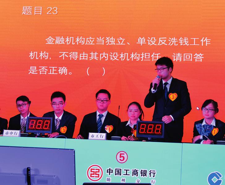 近日,在湖北省随州市银行业金融机构反洗钱知识竞赛中,工行随州分行代表队以沉着冷静、睿智巧妙的答题风格,展示良好的精神风貌,赢得现场领导和观众的好评。