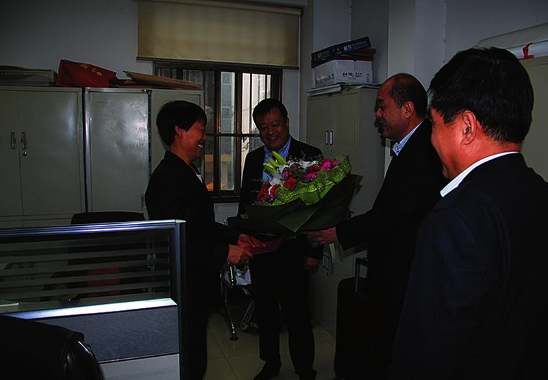 为了让临近退休员工感受到工行大家庭的关爱,同时也为了更好地听取他们的意见和建议,工行山东省枣庄市滕州支行从今年开始,在员工退休时开展“四个一”活动,即对每位退休员工赠送一份纪念品,支行领导与退休员工谈一次心,留一张合影,送一句退休赠言。图为近日该行领导慰问一位“达龄”退休员工(左一)。苗永峰摄影报道
