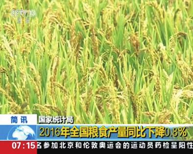 @21世纪经济报道根据国家统计局公布的数字,2016年全国粮食总产量61623.9万吨(12324.8亿斤),比2015年减少520.1万吨(104.0亿斤),减少0.8%。这是十三年来首次粮食产量减产。