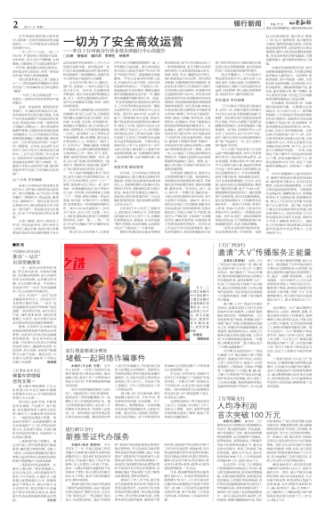 自助银行中心的员工迎难而上,他们把压力视作动力,在制度建设和强化执行力上狠下工夫,向精细化管理要安全、要效益,在自助设备“集中式管理、专业化保障、全天候安全运行”方面闯出了一片新天地。