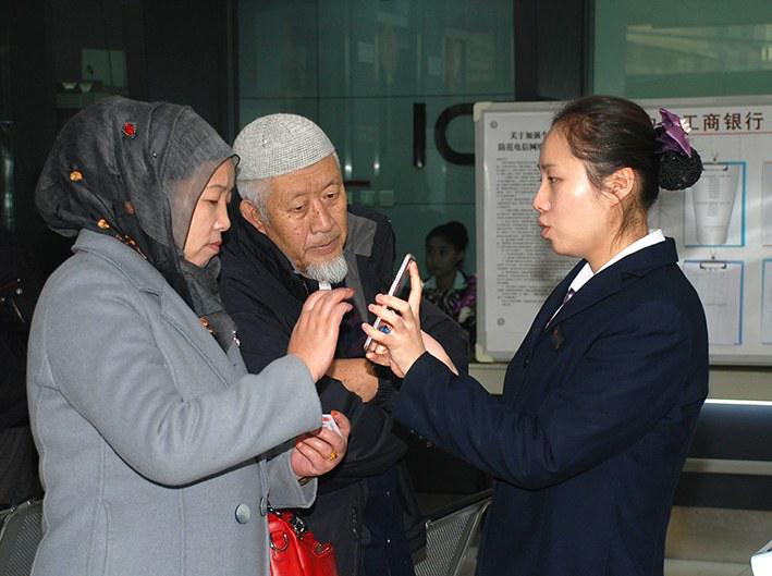 工行兰州市城关临夏路支行内抓建设,外树形象,从学习培训入手,使每位员工深刻理解“新服务,心满意”活动内涵,在实际工作中真正做到细心、耐心、诚心,热情周到服务客户。图为近日该行员工为客户讲解手机银行使用功能。冯作平摄影报道