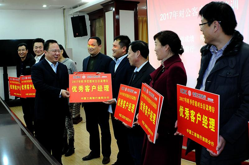2月20日,工行河南省南阳分行对新年旺季营销对公存款的先进支行和优秀客户经理,进行奖励。图为颁奖现场。蒋红升摄影报道