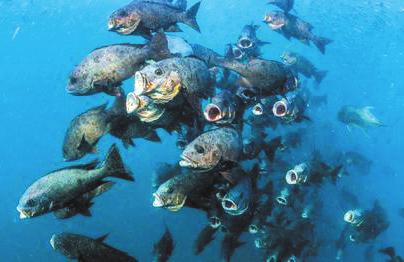 “正在捕食的狼鲷鱼”:镜头定格在鱼群进行U型转弯的瞬间。摄影师诺埃尔格瓦拉(No⁃elGuevara)回忆道:“鱼群忙着捕食,甚至都不理会我的存在。”