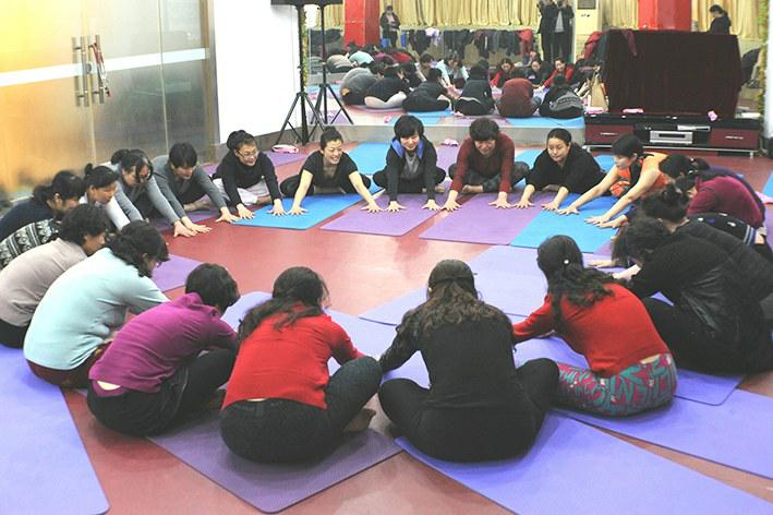 为增强员工体质,减缓工作压力,工行河南省南阳分行利用业余时间举办女职工瑜伽培训班。图为3至6月为期3个月的第一期培训班于近日开启。蒋红升摄影报道