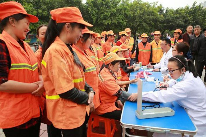 近日,四川省广安市广安区总工会、农行广安区支行联合广安宏州医院,开展了“情暖环卫工”义诊活动,为广安区300余名环卫工进行健康体检和健康咨询。李华