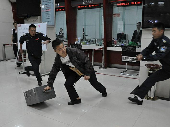 5月10日,工行四川省江油支行组织所辖8个二级支行网点负责人、大堂经理和客户经理以及保安公司人员,在该行营业室开展了反持爆炸物抢劫应急预案演练。通过紧迫、突然、逼真的演练,让营业网点员工与保安人员掌握了必要的预防和反持爆炸物抢劫要领。卢勇摄影报道