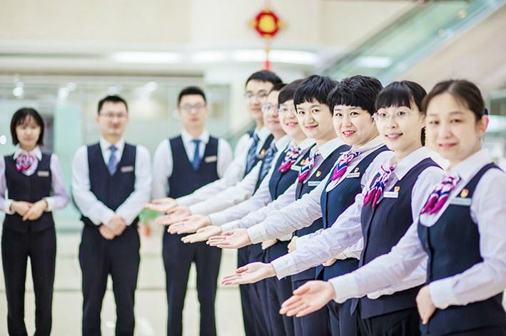 为深入推进服务工作,建设人民满意银行,从4月份以来,工总行决定在全行开展“服务口碑新变化、喜迎党的十九大”主题活动。工行青岛分行营业部高度重视,结合实际,通过开展党员上党课、党员讲体会、党员带头干等措施,激励党员做模范、克艰难、兑承诺,取得较好效果。图为5月11日,该部党支部利用晨会时间,组织党员柜员展示规范化服务礼仪。