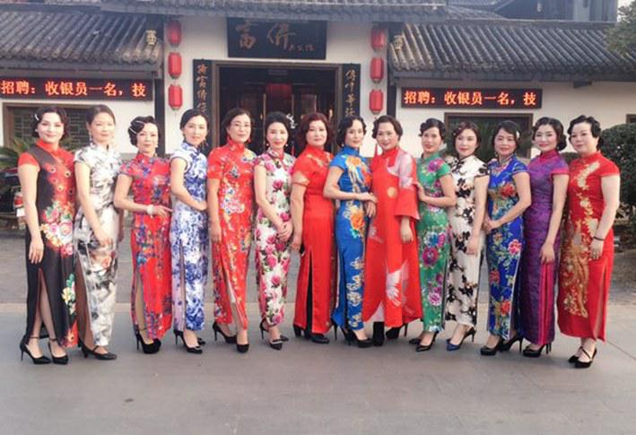 工行湖北省黄冈市长江支行弘扬中华传统服装文化,以旗袍会友,广交朋友,广揽客户,取得了明显成效。目前,该行已发展爱好旗袍个人中高档客户60余名。图为该行副行长吴尚英(左七)与部分“旗袍客户”合影。