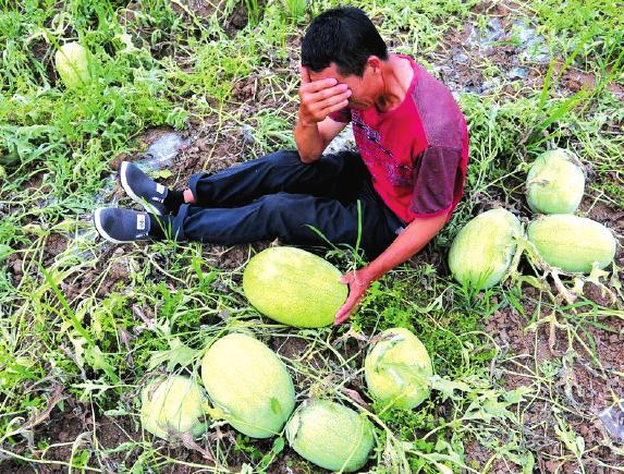 @新浪财经湖北枣阳南城办事处段湾村五组瓜农的西瓜丰收了,因三四月份当地雨水较多阳光不足,早熟瓜生长较慢,与普通瓜一同上市,价格持续走低。如今4万斤西瓜滞销,5毛一斤都没有人要。