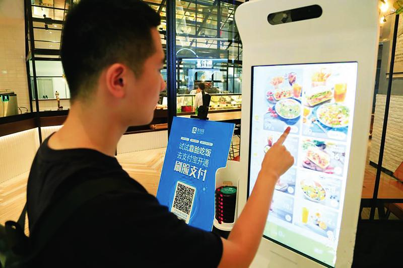 9月19日,顾客正在餐厅自助点餐。近日,杭州一家餐厅首次推出刷脸支付服务,用户开通该项功能后只需绑定手机号,通过支付平台刷脸即可完成交易,再也无须担心付款时手机没电或者忘带的尴尬。中新社供图