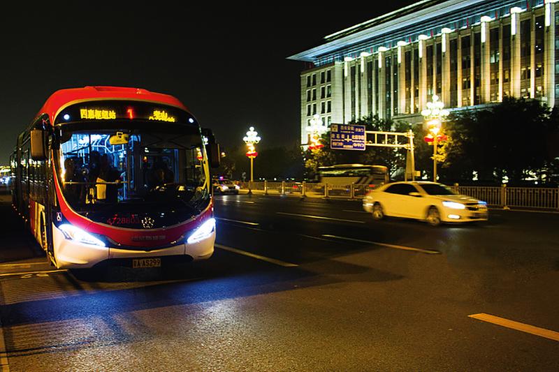 首批以“中国红”为外观主题的18米纯电动公交车,从10月22日起投入北京1路运营,成为长安街上又一道亮丽风景。1路整车采用轻量化设计,控制系统高度集成,在保证结构强度的前提下,可有效节能降耗。同时,路此次更换的新能源车型在北京市公交线路中首次配置了PM2.5自动过滤净化系统,可显著提升车厢内空气质量。CFP供图