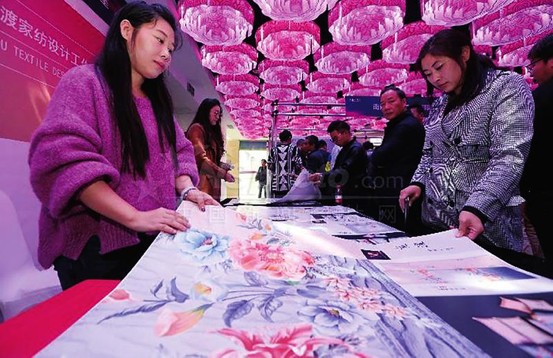 2017年10月26日,第十届中国(川姜)家纺画稿交易会在中国南通家纺城举行,62家家纺设计机构参会,参加展示交易的画稿达到1.8万幅。画稿会上,还将举行花型面料流行趋势等多个讲座和专场推介活动。中新社供图