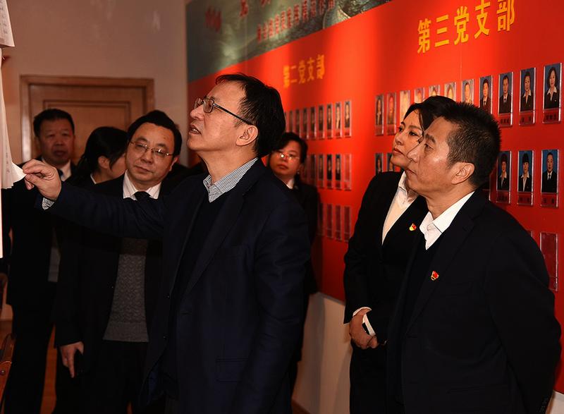工行甘肃省分行营业部紧密结合业务发展,创新抓好党建工作,形成党建和业务工作相互促进、共同发展的良性互动格局。图为近日工行甘肃分行党委书记、行长宋关昶(中),省分行营业部党委书记、总经理蒲五斤(右一),到工行兰州城关支行“党建工作室”调研创建工作。冯作平摄影报道