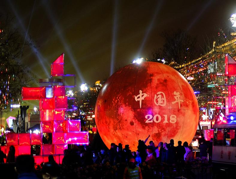 新春佳节将至,全国各地纷纷开展各种活动欢度春节。古城西安也装扮一新,开展“最西安中国年”文化主题活动,让过年期间来西安旅游的中外游客都爱上西安,在这里过个“最中国年”。图为西安大唐不夜城夜景。CPF供图