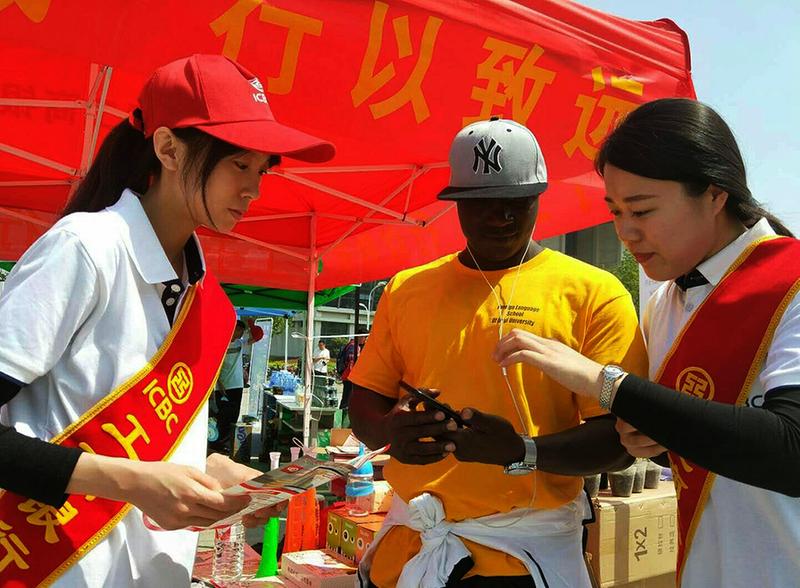 近日,工行山东省临沂分行为进一步宣传互联网金融产品,借助临沂大学召开田径运动会之际,在赛场外设立宣传站4个,所属城西支行、兰山支行、市中支行团委及团总支共组织优秀青年员工40余人,参加了本次宣传活动。省工行网络金融部副总经理李炬,市分行副行长魏宗杰、行长助理刘冬凯等,参加宣传活动。他们引导师生体验工行融e行、融e联产品,现场开立公共自行车卡等,接受师生咨询约1万人次。图为该行团干部向外籍大学生宣传。梁克水陈辉摄影报道