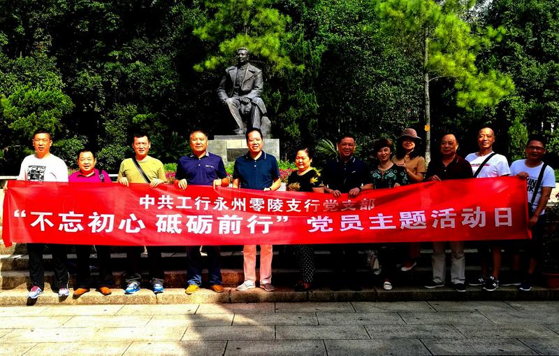 工行湖南省永州市零陵支行党总支日前组织在职党员来到永州祁阳浯溪公园,在无产阶级革命家、党和国家卓越领导人陶铸的铜像前,开展了以“不忘初心,砥砺前行”为主要内容的党员主题教育活动日,以锤炼党员党性修养。唐群摄影报道