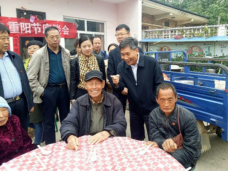 10月17日重阳节,工行山西省分行行长等一行十余人赴平陆县杜马村、龙源村进行扶贫调研,代表省分行共为两个村捐资20万元,用于民生项目;并在征询当地乡村干部意见建议的同时,入户走访慰问了重点贫困户。图为该行行长陆钦(右二)在扶贫村与老人拉家常。