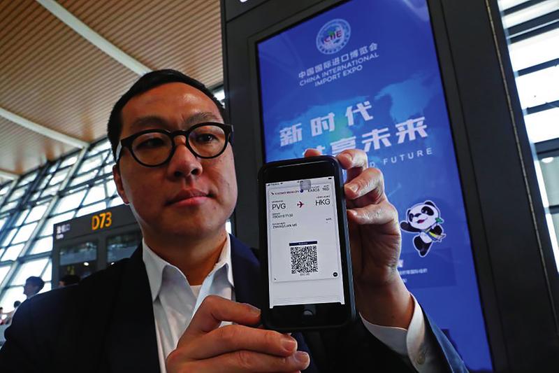 10月29日,搭乘国泰航空KA803航班,从上海前往香港的旅客张廉,凭着国泰航空网上值机的二维码,顺利完成了在浦东T2的出境、安检、登机手续,全程只花了10分钟。他成为中国内地机场首位通过无纸化方式值机、过检、登机的旅客,浦东机场也成为内地首家推出出境旅客无纸化便捷出行的机场。中新社供图