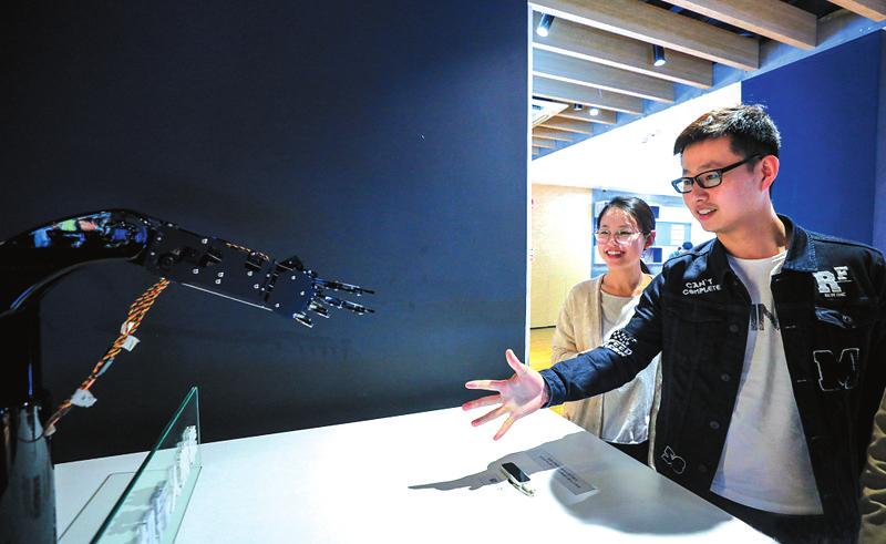 4月6日,国内首家向市民开放的5G体验厅在杭州启用。体验区的体验项目分为5GVR全景高清视频、5G+AI机器人体验、手游电竞对战体验等。在体验厅内最受欢迎的要数猜拳机器人了,5G低时延加上AI智能算法,机器人能快速做出判断并给予回应。CFP供图