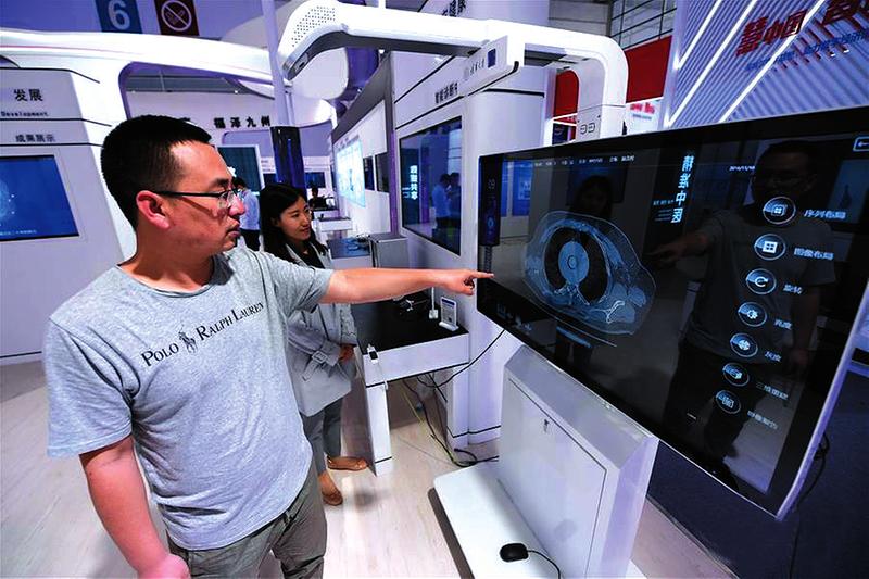 5月5日,第二届数字中国建设成果展览会开幕。众多“黑科技”亮相,展示了“互联网+“智能+”最新应用成果,以及数字经济发展的最新动向。图为工作人员演示医疗多模态职能交互系统。新华社供图