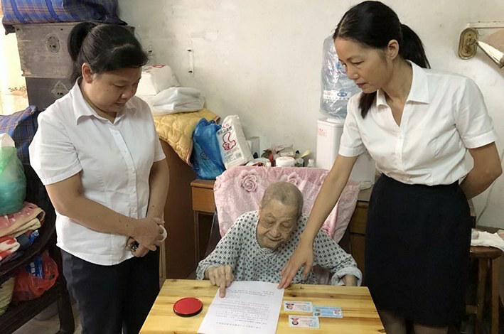 从2019年6月份起,广西区北海市本级退休人员的养老金将通过社保卡的金融账户来发放。90岁的吴奶奶一直卧病在床,行动不便。针对老人的实际情况,工商银行北海市四川北路支行特事特办,近日为老人提供上门服务,将柜面服务延伸到客户的床前,为老人激活银行卡,保证老人养老金发放。洪肇琴摄影报道