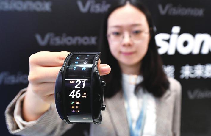 日前,2019中国国际数字经济博览会在河北省石家庄市开幕,作为目前国内唯一以数字经济冠名的国家级展会,本届博览会以“数字经济引领高质量发展”为主题,共吸引了400余家企业参展,集中展示了数字经济领域最新技术、产品、服务和商业模式。图为工作人员展示一款柔性显示智能可穿戴手机。新华社供图