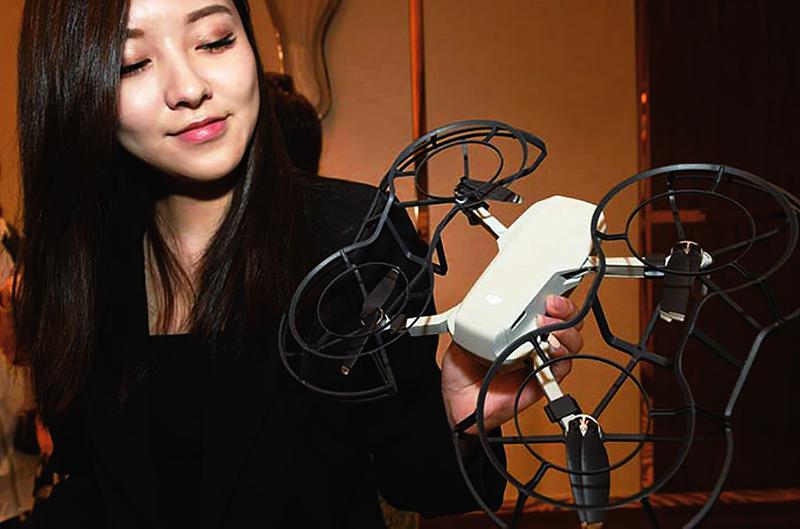 近日,大疆公司发布一款可折叠设计航拍小飞机,该产品是大疆推出的重量最轻、体积最小的可折叠无人机,机身重量(含电池)249克,折叠后机身体积仅有可乐罐大小,将带给用户新的操控体验。新华社供图