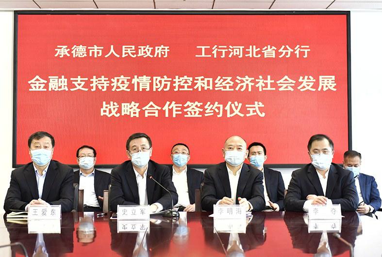 近日,河北省承德市政府与工商银行河北省分行举行金融支持疫情防控和经济社会发展战略合作协议签约活动。活动采取视频连线、网上签约的特殊方式,涉及承德市企业复产复工、重点项目建设、制造业转型升级、供给侧结构性改革、助力小微企业发展和民生保障等多个领域。工行河北分行党委书记、行长史立军出席活动并致辞,工行河北分行领导李明海、王爱东、李夺出席活动。承德市委副书记、市长常丽虹出席活动并致辞,市委常委、常务副市长李晋宇主持活动,副市长崔万峰代表市政府与工行河北分行签署《金融支持疫情防控和经济社会发展战略合作协议》。孔令明摄影报道
