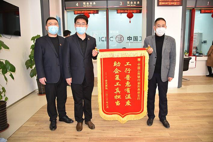 3月30日,辽宁省朝阳市龙城区全友家私商场总经理带领财务人员,将绣有“工行普惠有温度助企复工真担当”的一面锦旗,送到工行辽宁省朝阳分行燕都支行普惠金融科,感谢该行在抗击新冠肺炎疫情特殊时期“雪中送炭”为企业提供300万元贷款支持。据了解,该行抗击疫情以来已累计为10户小微企业投放贷款2671万元。