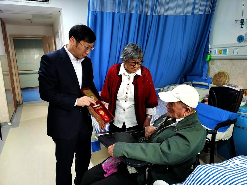 工商银行湖南省邵阳分行党委书记、行长周壮山近日走访慰问离休抗美援朝志愿军老战士王大文,送上抗美援朝70周年纪念章和鲜花,并向他致以崇高敬意和亲切问候。
