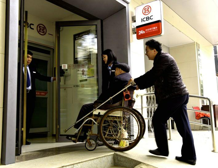 今年以来,工行河南省南阳分行投入资金,下工夫提升营业网点各项便民服务设施,其中到11月底全辖所有网点全部配备了无障碍通道。蒋红升 摄影报道
