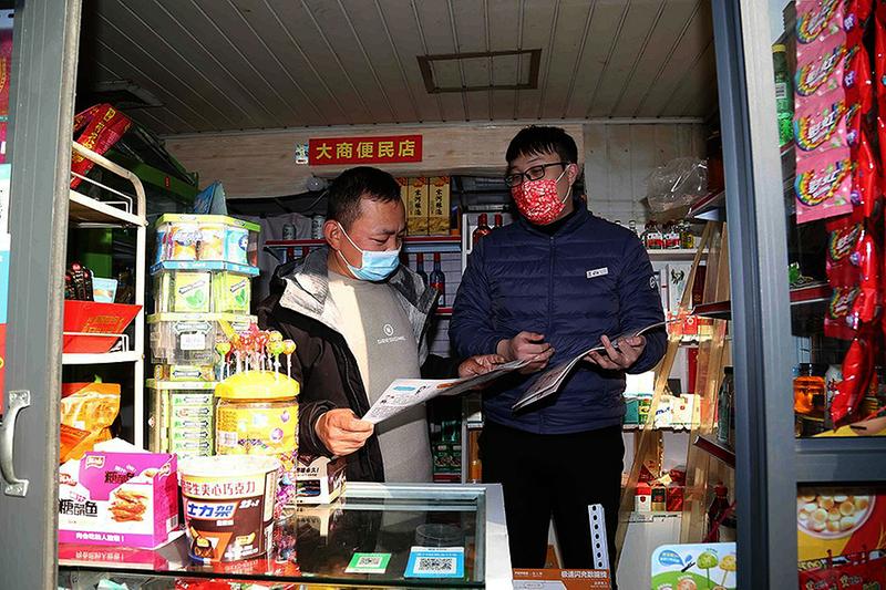 春节前后,工行河南省许昌市分行依据人行郑州中心支行的要求,积极组织开展人民币现金收付主题宣传活动,使公众知晓人民币是最基础、最广泛使用的支付工具之一,任何单位和个人不得拒收,营造合理、安全、顺畅的现金流通支付环境。图为该行南关支行客服经理近日在街头便民店向店主宣传“整治拒收现金行为”折页内容。