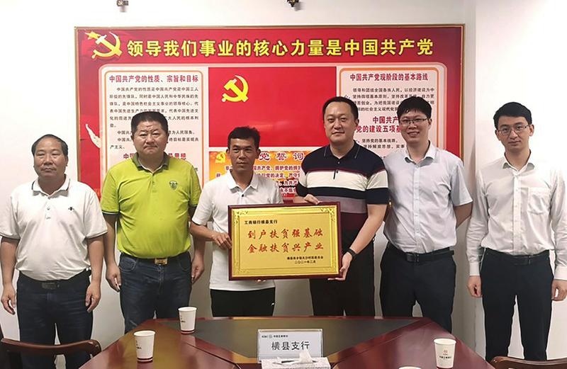 工行南宁分行把脱贫攻坚的政治责任担在肩上,情系百姓,始终将扶贫工作作为重点来抓,坚持定点扶贫和金融精准扶贫相结合,积极推动精准扶贫落地见效。2021年3月30日,工行南宁横县支行荣获定点扶贫村大沙村委党支部赠匾,表彰该行帮扶的113户贫困户全部脱贫,出色完成脱贫攻坚任务。李霄黄海帆摄影报道