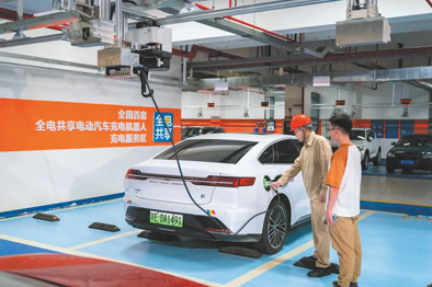 @澎湃新闻 近日,由国网苏州供电公司研制的全国首套全电共享电动汽车充电机器人系统在苏州投入运行。据悉,新能源汽车充电机器人系统改变了传统新能源汽车采用“一对一”固定充电桩充电的方式,通过机器人控制技术、物联网技术和调度算法等精准控制充电枪移动到指定车位,协助车主快速充电,实现从“车找桩”到“桩找车”的转变,大幅提高了充电桩的利用效率,减少建设投资成本。