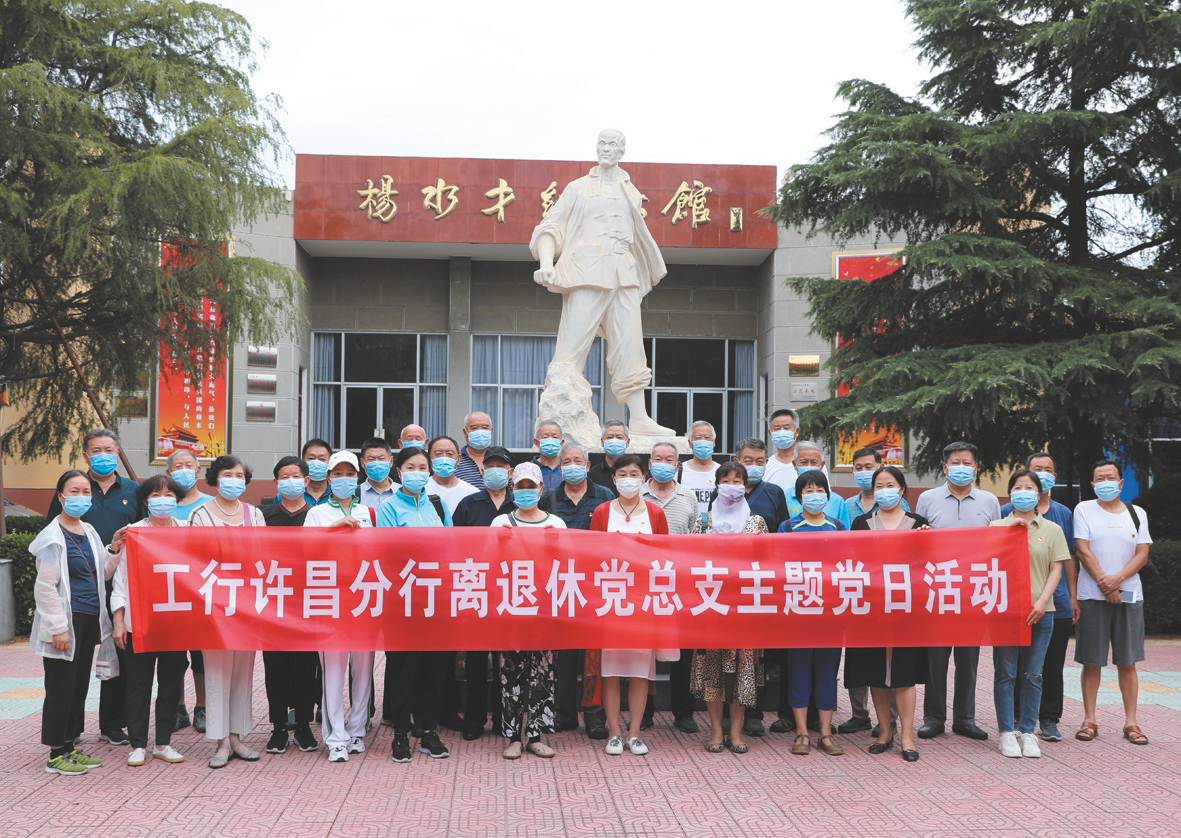 近日,工行河南省许昌分行组织老干部党支部开展党日活动,奔赴红色教育基地杨水才纪念馆参观学习,重温入党誓词,学史明理、学史增信、学史崇德、学史力行。