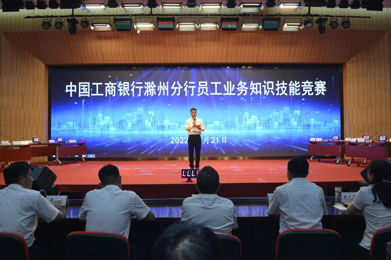 这是工行安徽省滁州分行近日举行的“2022年员工业务知识技能竞赛”决赛现场。经过前期网上知识竞赛、专业技能比武等3个环节,该行从下辖8家一级支行筛选出32名选手,进入员工业务技能竞赛决赛。