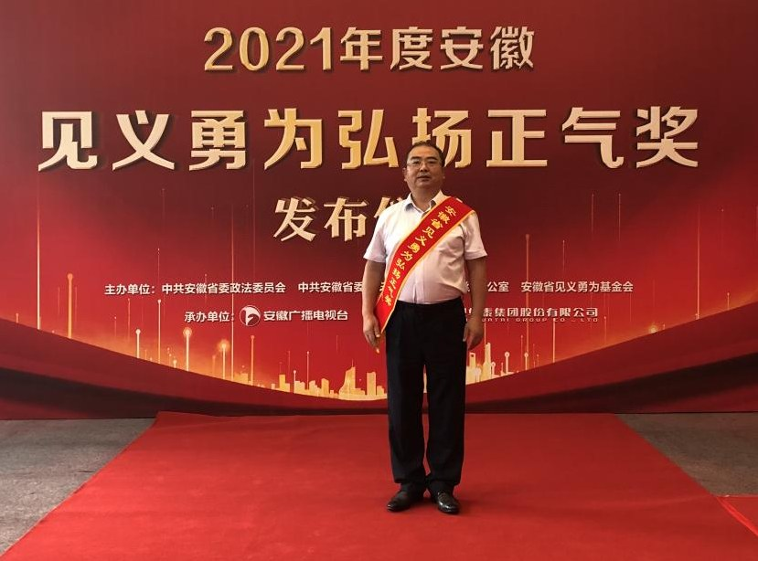 本报讯(龚宣)为倡导见义勇为行为,营造崇尚英雄、学习英雄、争当英雄的良好社会风气,近日,2021年度“安徽见义勇为弘扬正气奖”发布仪式在合肥举行,48名获奖者逐一揭晓。其中,工行安徽省分行法律事务部刘世安荣获2021年度“安徽省见义勇为弘扬正气奖”三等奖。