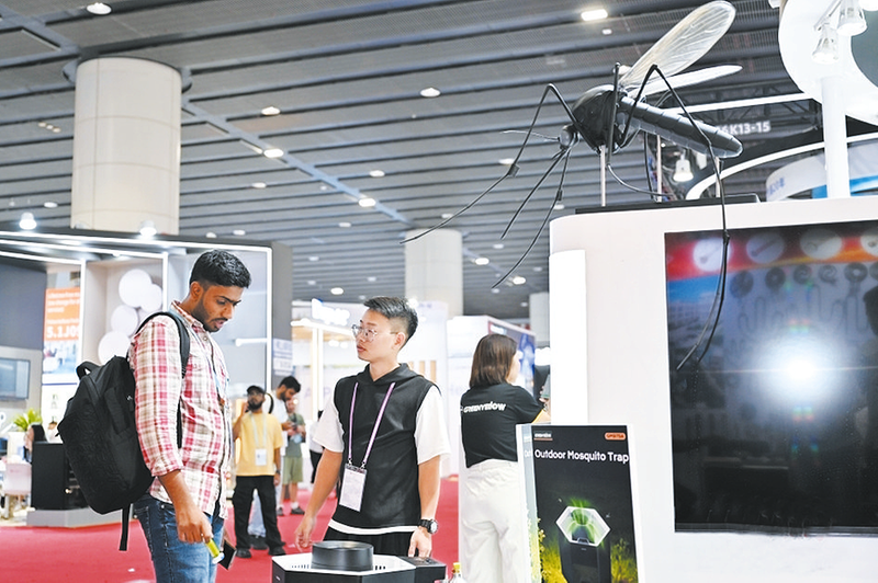 为期5天的第138届广交会第一期日前在广州闭幕。本届广交会第一期以“先进制造”为主题,展览总面积达52万平方米,设置展位超2.5万个,吸引约1.2万家企业参展。境外采购商参与热度显著,累计线下参会约15.79万人,覆盖全球222个国家和地区,环比增长6.3%。图为客商与某驱蚊产品展商在交流。