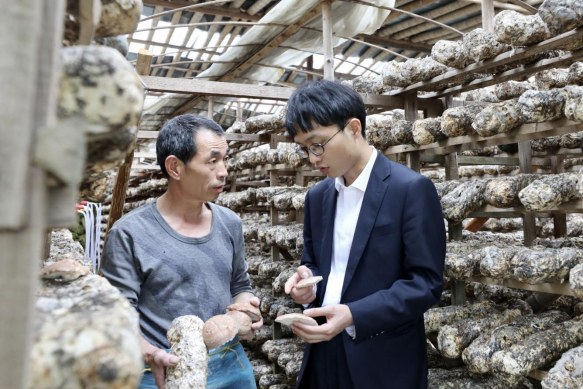 丽水分行工作人员考察菇农,了解融资需求。秀山丽水间,文明之花再绽新蕊。