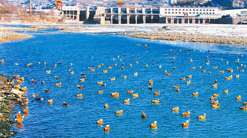 随着水质水量的明显改善,黄河府谷段呈现出了百鸟争鸣的喜人场面,赤麻鸭、鸟中国宝黑鹳、反嘴鹬、喜鹊等飞禽陆续返回,它们在这里栖息、嬉戏,家庭成员越来越多,画面越来越温馨。