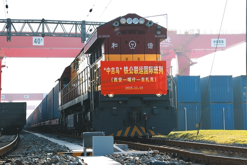 陕西首趟“中吉乌”铁公联运国际班列开行