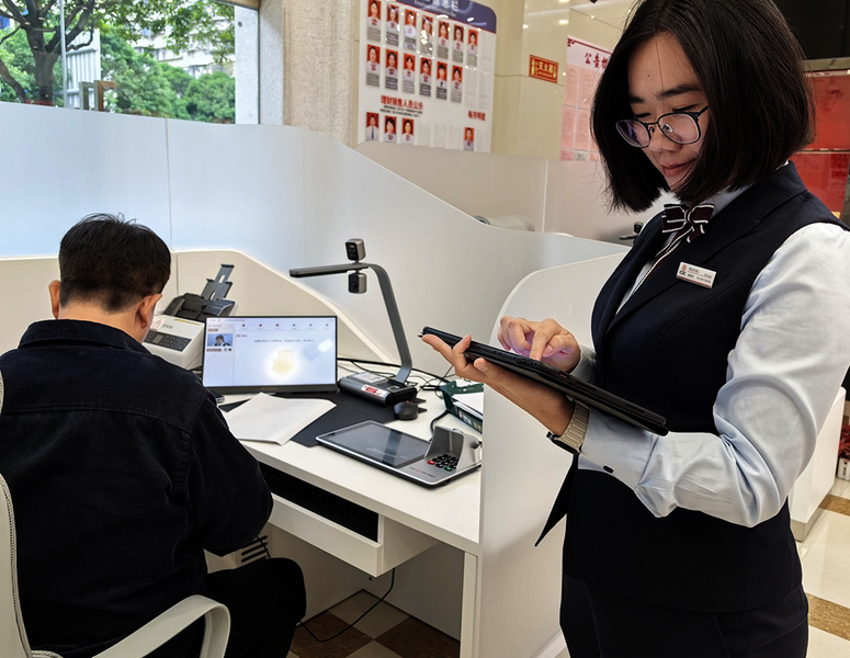 近日,魏先生手持公证书来到漳州分行营业部厅堂,准备办理妻子意外身故后的个人财富继承业务。当时网点业务繁忙,柜台前排队的客户较多,魏先生显得有些焦急。厅堂值班主管发现这一情况后,主动引导他使用网点近期全新升级的远程在线柜台。在值班主管的耐心指导下,魏先生通过远程设备与在线客服经理顺畅沟通、便捷操作,顺利完成资料受理、信息核对、授权确认及账户处理全流程。相较传统柜台,“柜面通”从服务引导到业务办结,大幅缩短了排队等候时间,更避免因细节问题导致业务停滞,让魏先生切实感受到智能服务的省心与高效。