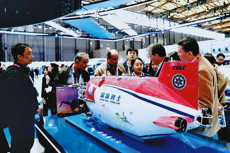 近日,2025年中国国际海事技术学术会议和展览会在上海新国际博览中心开幕。本届会展以“创新与合作,共促海事业可持续发展”为主题,展览面积突破11万平方米,吸引全球16个国家和地区的超2200家企业参展。图为观众在参观“深海勇士”号载人潜水器模型。