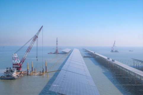 东营分行助力的国华HG14海上光伏1000MW项目建设现场。