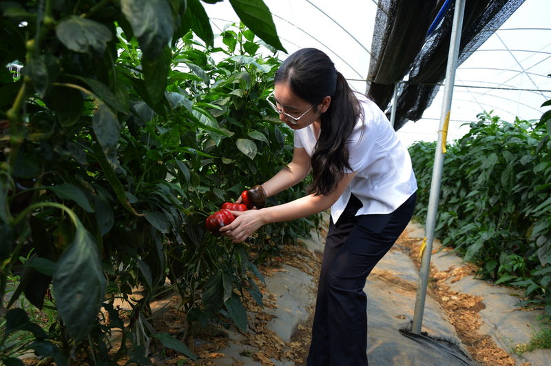 北海分行普惠青年先锋队员在彩椒田间开展调研。