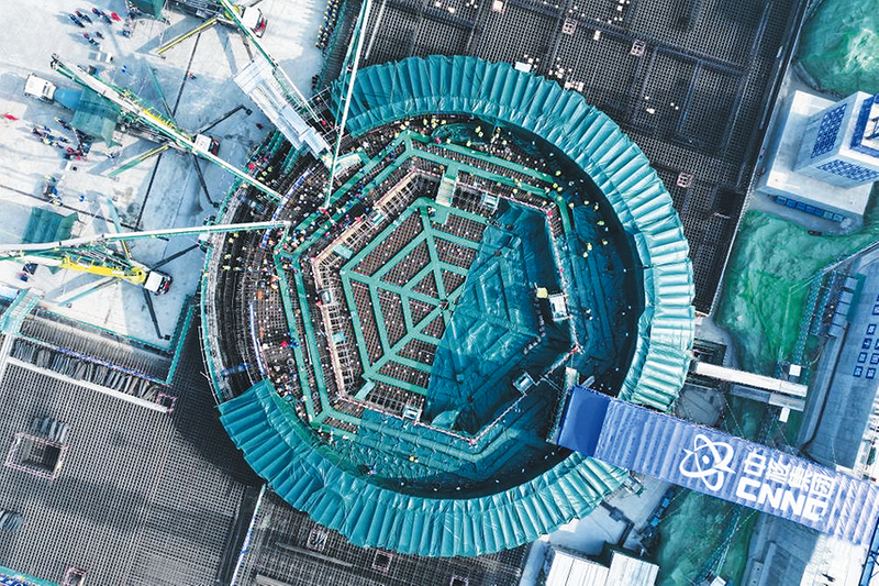 近日,位于江苏省连云港市的江苏徐圩核能供热发电厂1号机组核岛开始混凝土浇筑,项目进入主体工程建设阶段。这是“十五五”开局之年我国开工建设的首台核电机组。图为工人在1号机组核岛上浇筑混凝土。