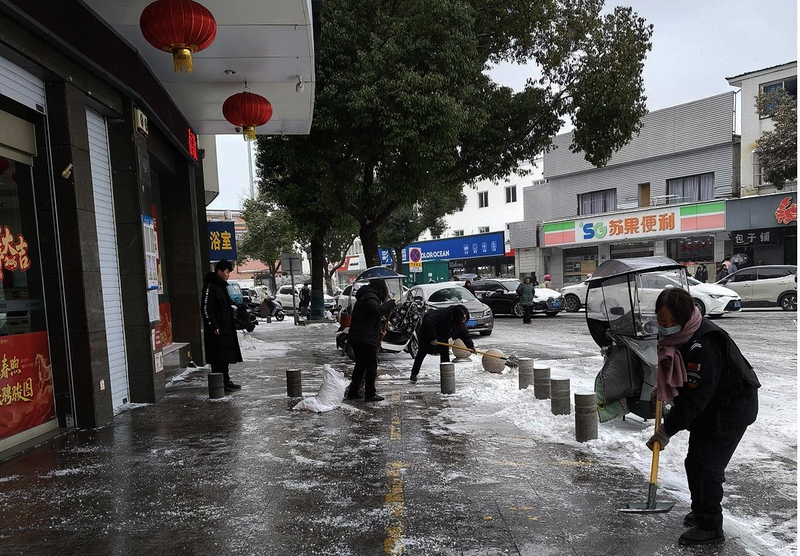 1月20日,受强冷空气影响,江苏泰州兴化市迎来降雪天气,气温骤降、道路湿滑。为确保客户安全与网点运行顺畅,兴化农商银行西鲍支行迅速启动应急预案,组织员工第一时间清扫营业场所周边区域积雪,撒工业盐,铺设防滑垫,及时消除安全隐患,确保客户进出安全。网点员工不畏严寒将积雪清扫干净,暖心守护出一条条“金融服务安全通道”。