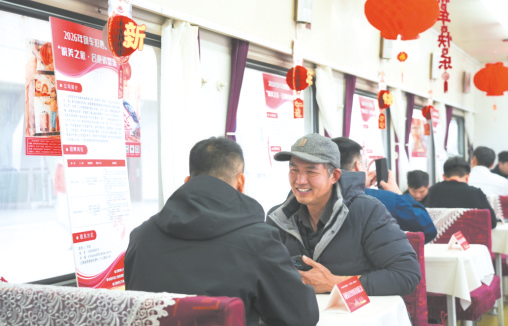 @央广网 近日,“皖美之旅·合肥请您来”2026年列车专场招聘会在合肥火车站K8362次列车上正式启动,这是安徽省内首趟春运列车招聘会,由合肥市人社局与合肥客运段联合举办,将春运归途与就业服务深度融合。列车驶离后,10家合肥重点企业代表在餐车布置“移动展位”,与返乡务工人员、高校毕业生等旅客面对面交流,现场接受咨询、收取简历、开展初步面试。同时,“直播带岗”同步开播,企业代表通过官方抖音号推介岗位、互动答疑,实现线上线下同频共振。工作人员还在现场提供就业创业、社保等政策咨询和职业指导,为旅客送上暖心礼包。此次活动将公共就业服务延伸至春运一线,搭建起企业与人才对接的“移动桥梁”,既缓解企业用工需求,也向游子传递了合肥引才诚意,助力城市高质量发展。