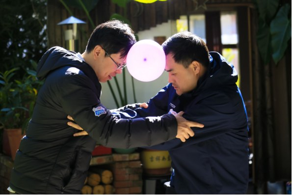 怒江分行组织开展“燃旺季聚全力,勇拼搏创佳绩”主题户外拓展活动,图为员工团结协作完成彩色气球两地搬运比赛。