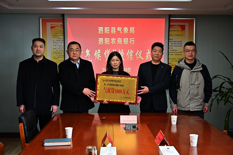 前不久,江苏泗阳农商银行与泗阳县气象局联合举办“气候贷”产品发布暨授信仪式。泗阳县气象局党组成员、副局长李业进,泗阳农商银行党委委员、副行长秦锐利共同出席,见证“气象+金融”融合服务新模式正式启航。